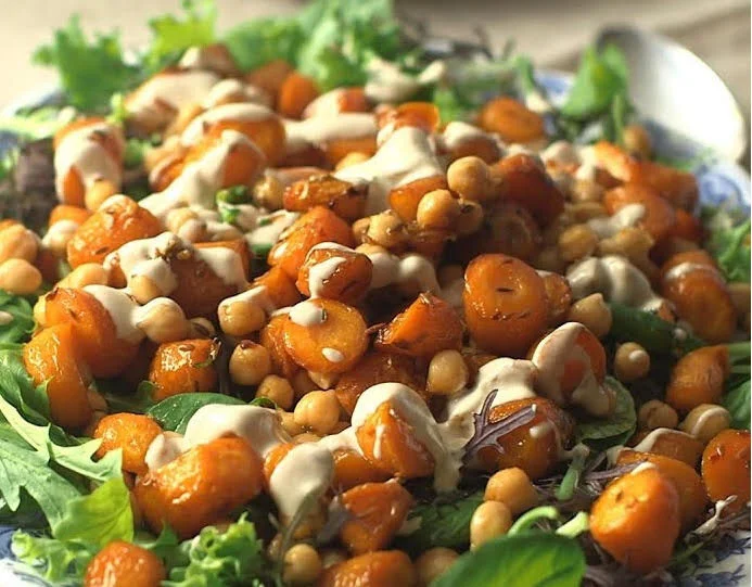 Roast chickpeas: Heat oven to 425 degrees F. Toss chickpeas with one tablespoon olive oil, Pinch of Pink Himalayan salt and cumin until they’re all coated. Spread them on a baking sheet or pan and roast them in the oven until they’re browned and crisp.