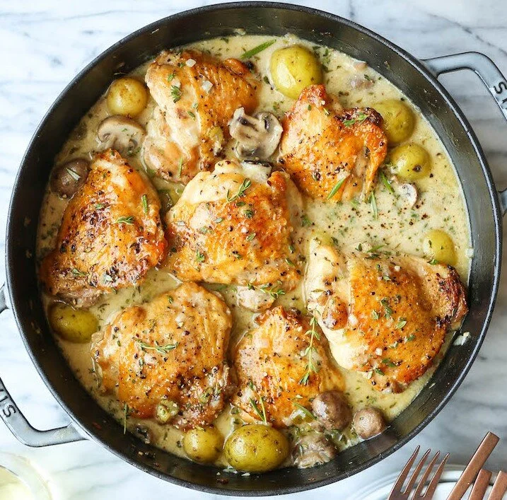 Reduce heat and cook with the lid on for 20 minutes until the chicken is cooked through.